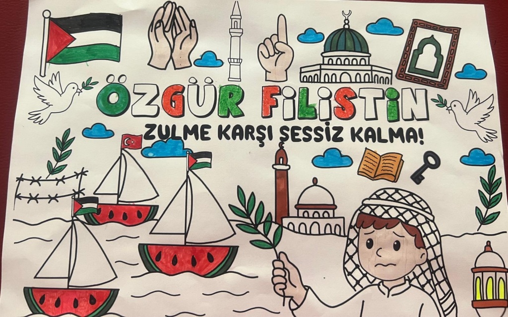 7 Ekim 2025 Salı günü Filistin'de yaşanan insanlık dramına dikkat çekmek amacıyla okulumuzda "Filistin Farkındalık Etkinlikleri" düzenlenmiştir. Bu kapsamda video gösterimi, Filistinli çocuklara mektup yazma, resim yapma gibi etkinliklerle barışın ve kardeşliğin önemini vurguladık. Gazze 'ye ses olduk.